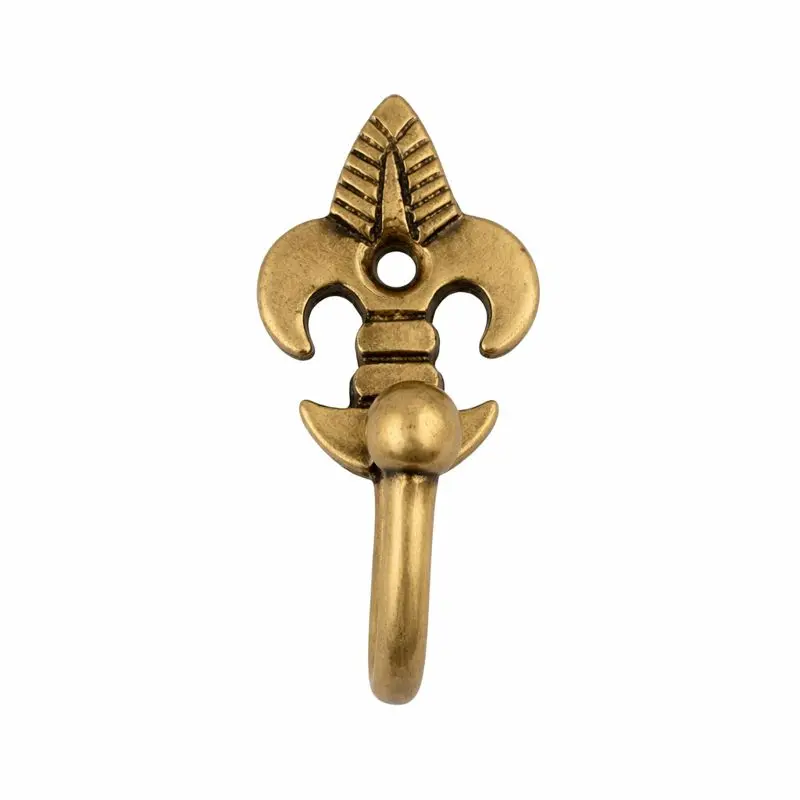 The Fleur-de-lis Mini Hook, Decorative Gold Drapery Tieback/Small Cabinet Hook is crafted for versatile wall use, ideal for curtains, cabinets, or accents.